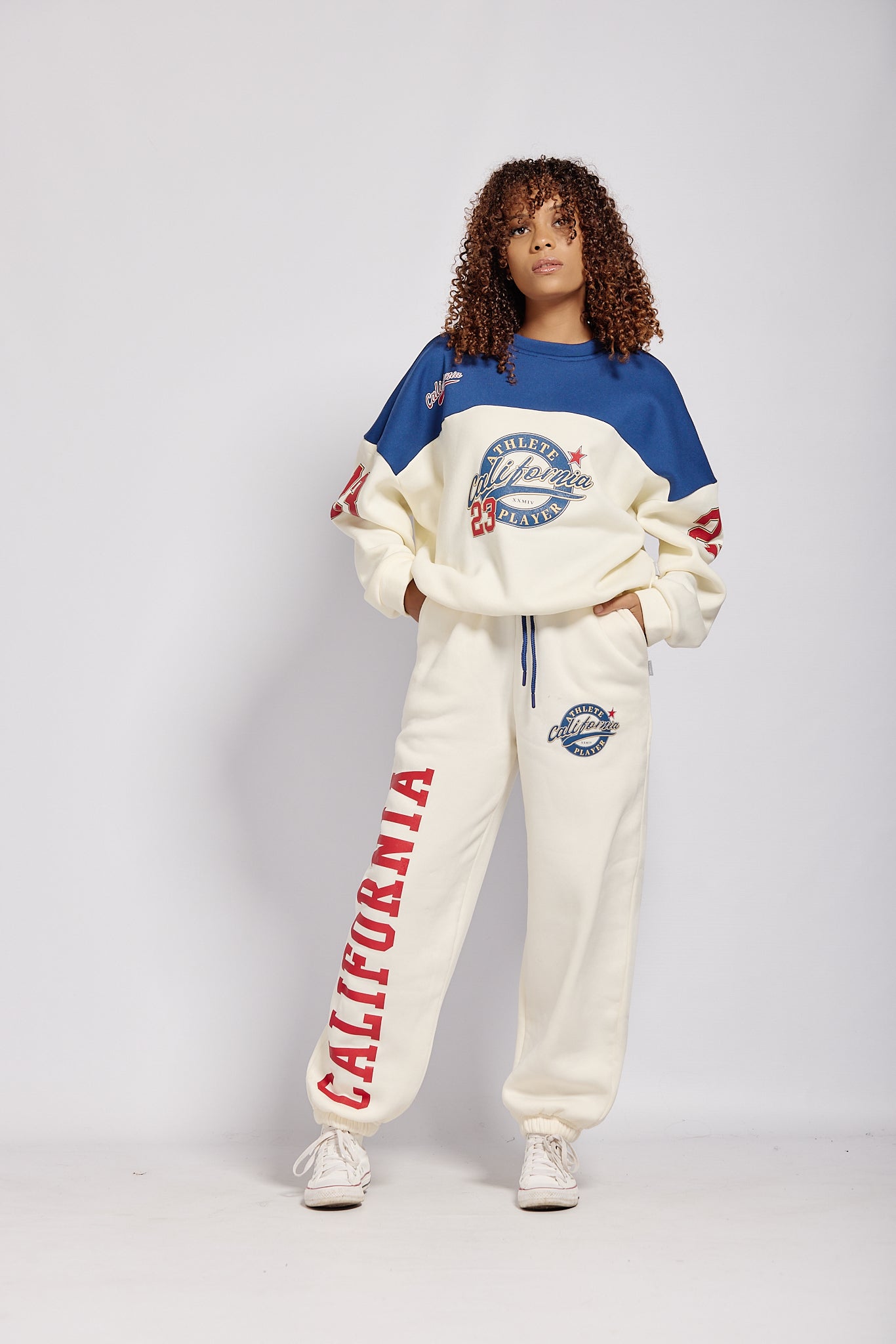 LADIES CREAM/NAVY "CALIFORNIA"  OVERSIZED FLEECE JOGGER