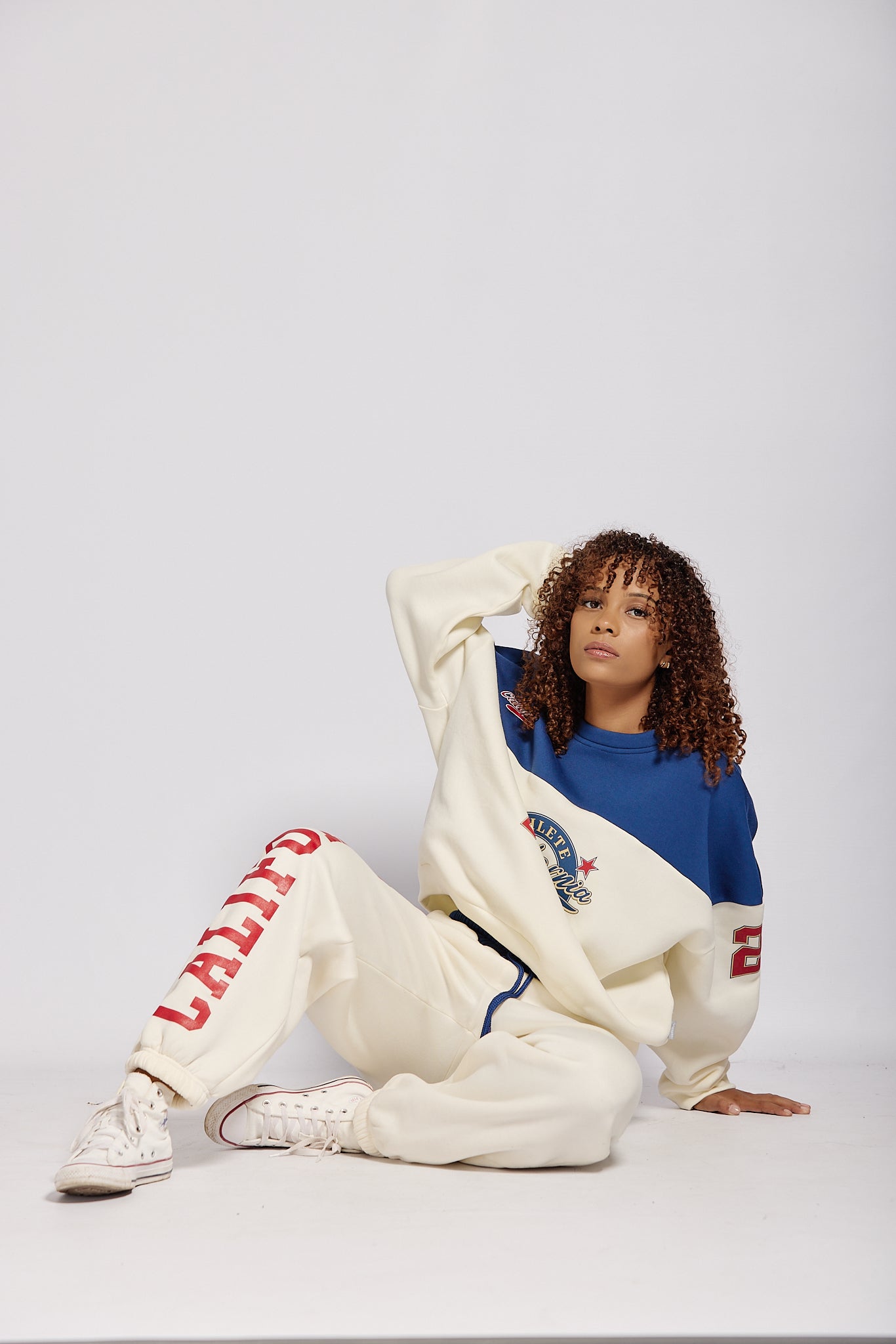 LADIES CREAM/NAVY "CALIFORNIA" OVERSIZED FLEECE JOGGER
